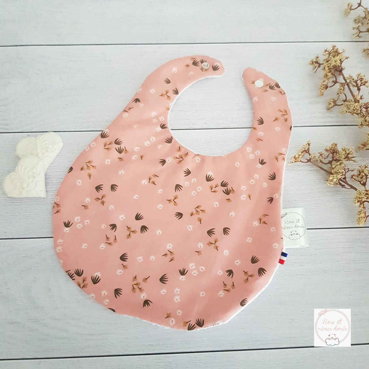 Les bavoirs bébé Rose et rêves dorés sont confectionnés par les soins de la créatrice de la marque, selon le savoir-faire artisanal, dans des matières certifiées sans substance nocives, dans son atelier parisien.