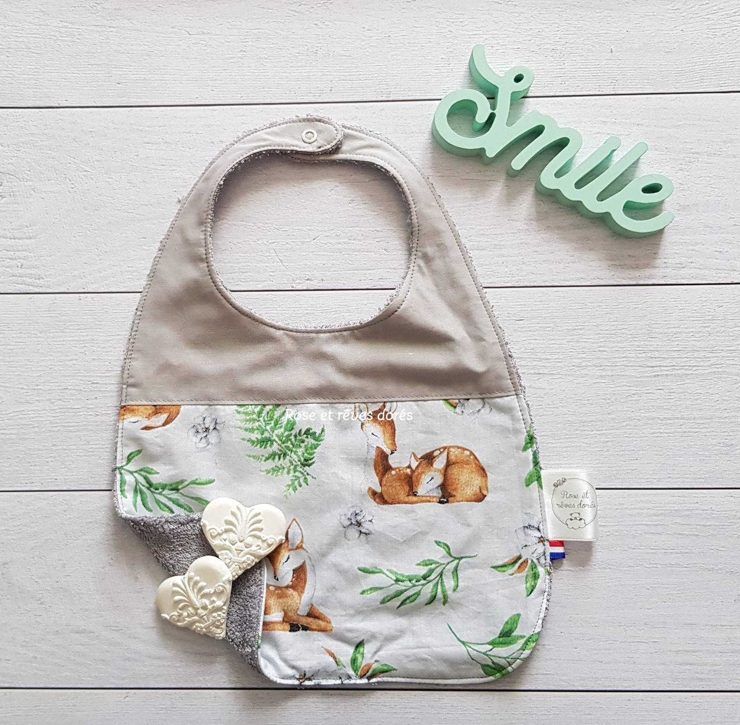 En choisissant un bavoir Rose et rêves dorés vous choisissez un bavoir confectionné par mes soins, de façon artisanale en France dans des matières certifiées sans substances nocives pour bébé.