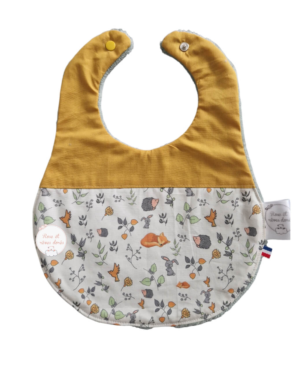 Ce bavoir comme toutes les confections de Rose et rêves dorés est entièrement conçu et fabriqué en France. Du dessin du patron au dernier point de couture il est confectionnées par les soins de l’artisan, selon le savoir-faire artisanal dans son atelier parisien.