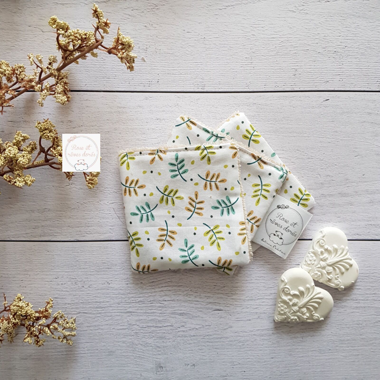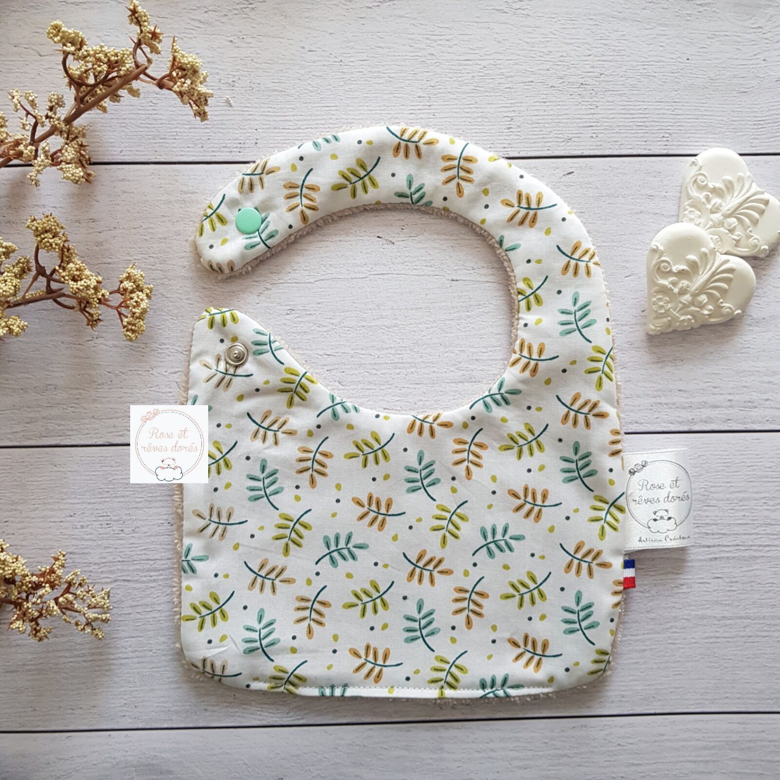 Les motifs ont été choisis afin d’être non genrés. Pour le bavoir, les lingettes et la doublure de la pochette : le coton est blanc à motifs feuillage. L’éponge du bavoir et des lingettes est de couleur beige. Le coton extérieur de la pochette est de couleur kaki. Toutes ces matières sont certifiées sans substances nocives pour l’Homme et l’Environnement. Tout est pensé, patronné, découpé et confectionné dans l’atelier parisien de Rose et rêves dorés, selon le savoir-faire artisanal.
