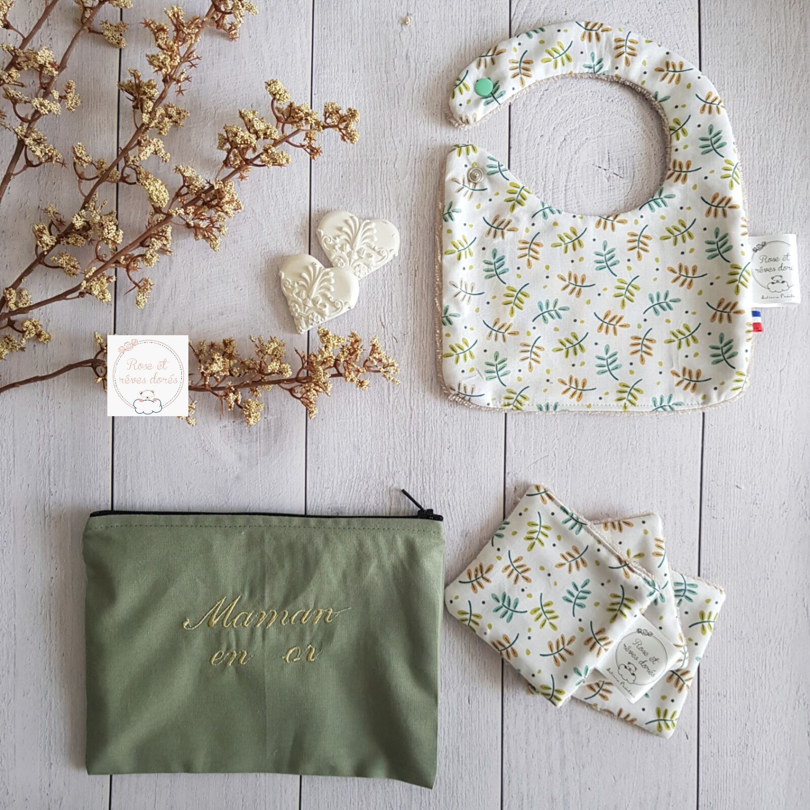 Une naissance est prévue dans votre entourage ? Vous cherchez un cadeau unique fabriqué en France qui ravira maman et bébé ? Voici le coffret maman bébé. Il comporte une pochette brodée pour maman, un bavoir pour bébé et des lingettes lavables pour bébé ou maman. En savoir plus