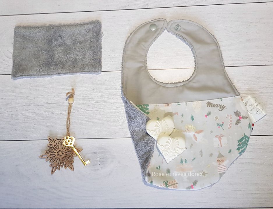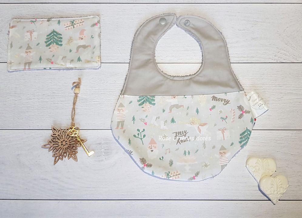 Pour offrir ou pour s’offrir, un duo idéal pour les fêtes de fin d’année composé d’un bavoir et d’une lingette.