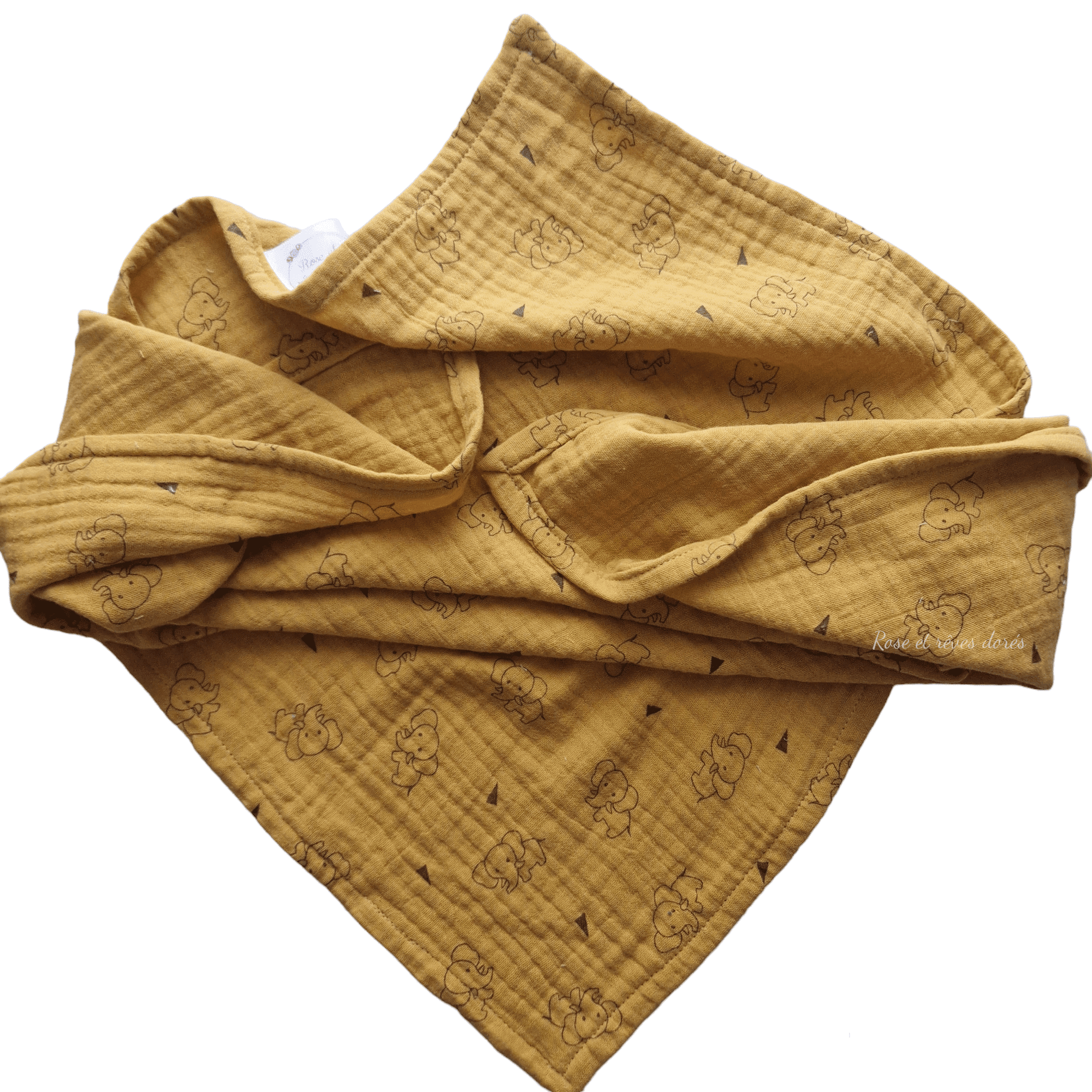 - Fabrication française : le lange est confectionné en France, dans l’atelier parisien de Rose et rêves dorés, par ses soins, de façon artisanale.