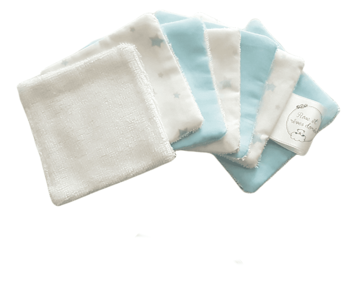 Rose et rêves dorés vous propose au choix un lot de 3 (2 motifs et 1 unie) ou 7 lingettes (4 avec des motifs et 3 unies). Elles ont toutes une face en coton et une face en éponge bambou.