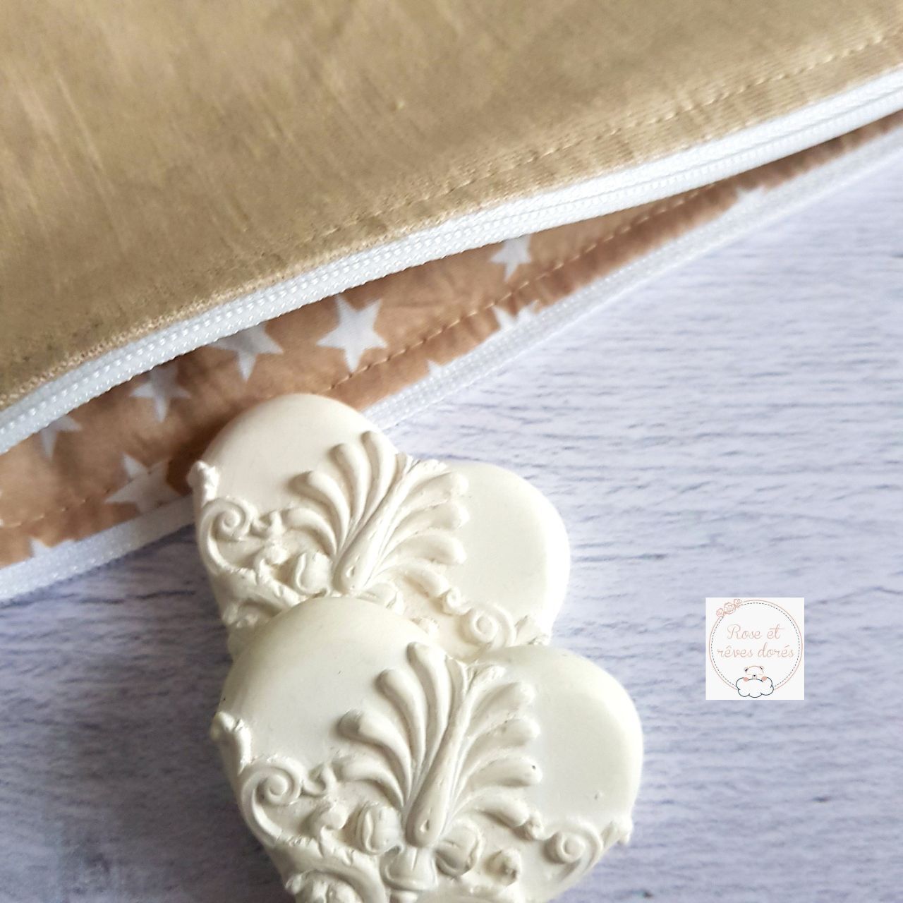 Que ce soit pour ranger des accessoires pour vous ( maquillage, papiers, clés, médicaments …) ou pour votre enfant ( lingettes lavables, tétine ou tout autre accessoire de votre choix) à vous d’en faire votre compagne idéale. Elle deviendra vite une pochette indispensable dans votre quotidien.