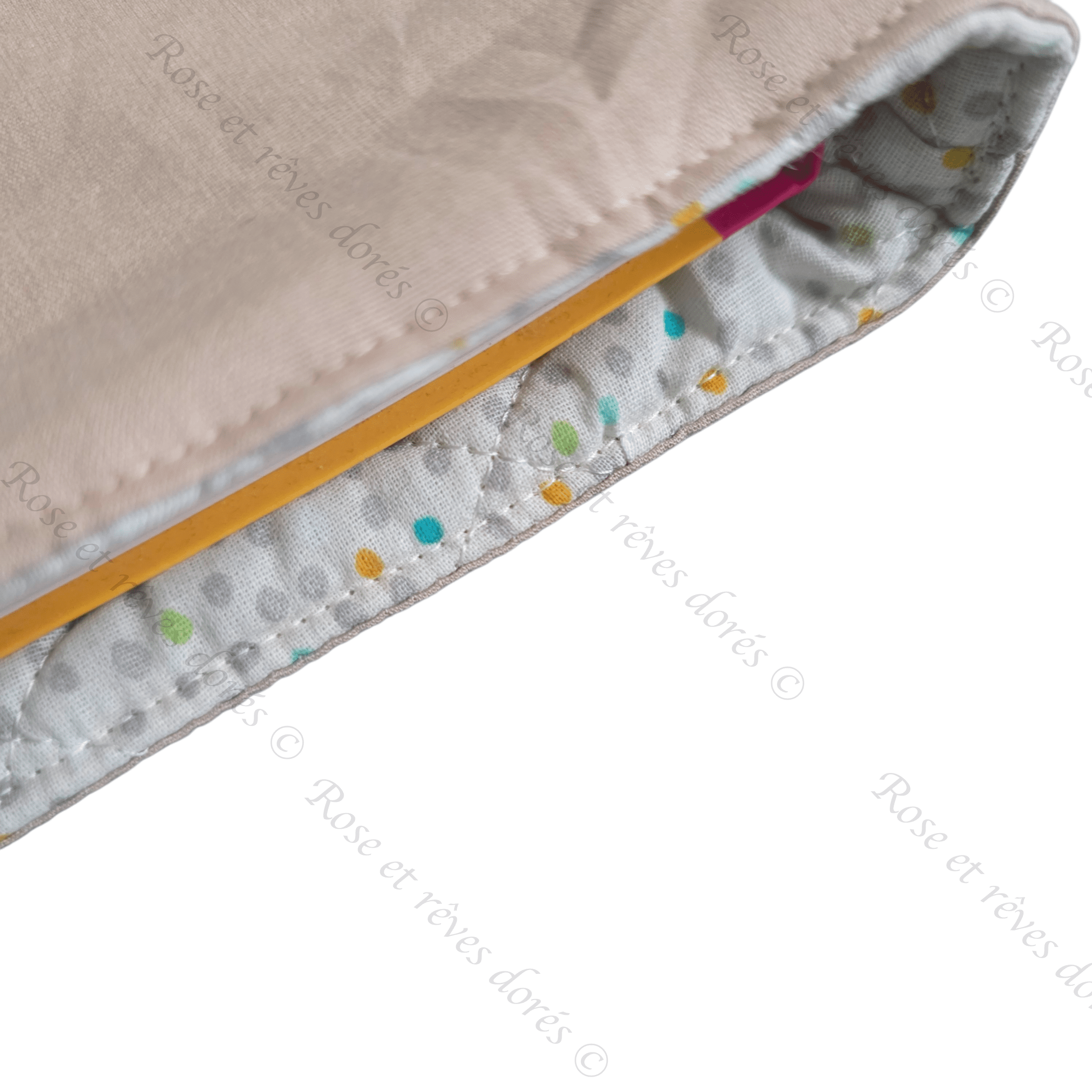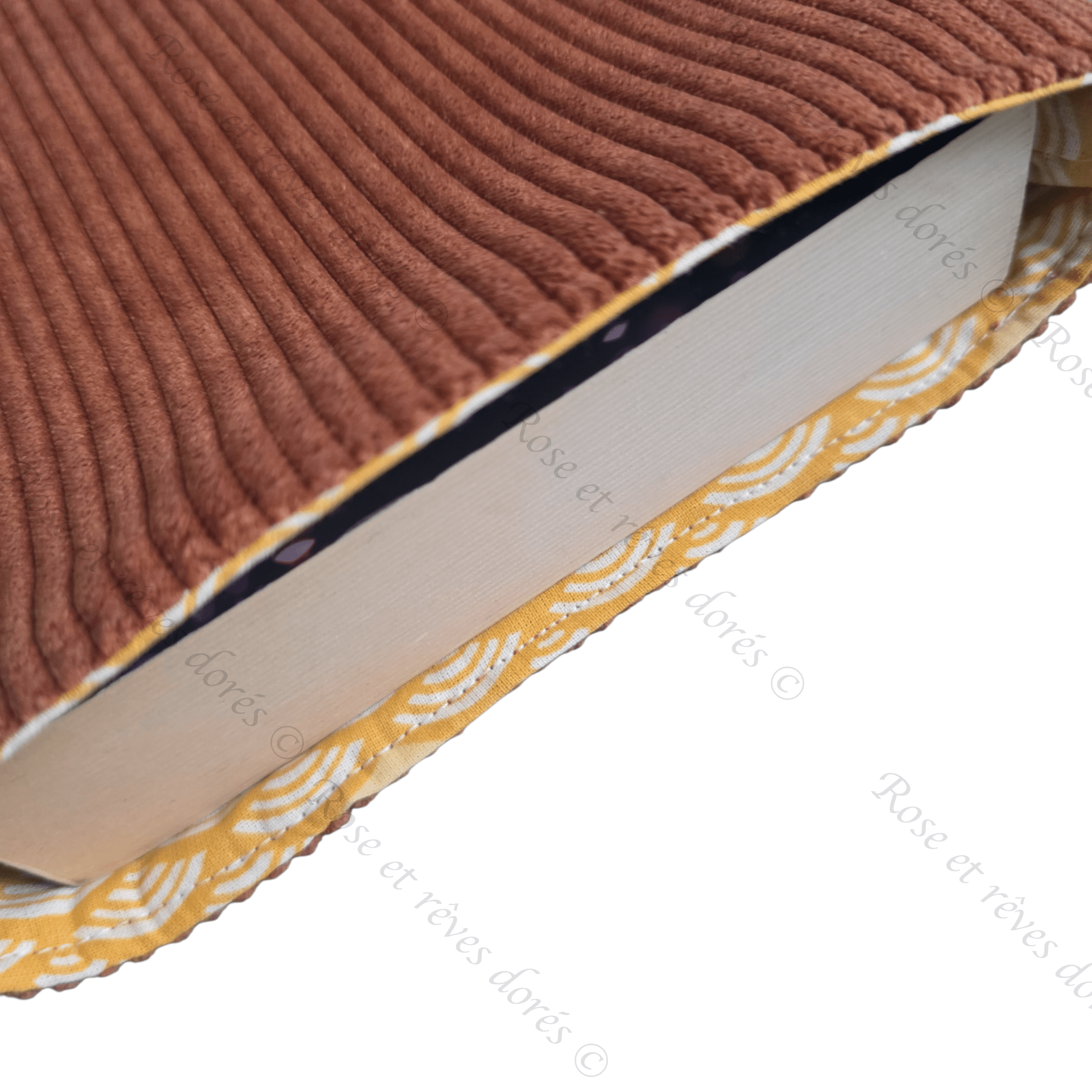 Ces pochettes à livre comme toutes les confections de Rose et rêves dorés sont entièrement conçues et fabriquées en France. Du dessin du patron au dernier point de couture elles sont confectionnées par les soins de l’artisane, selon le savoir-faire artisanal dans son atelier parisien.