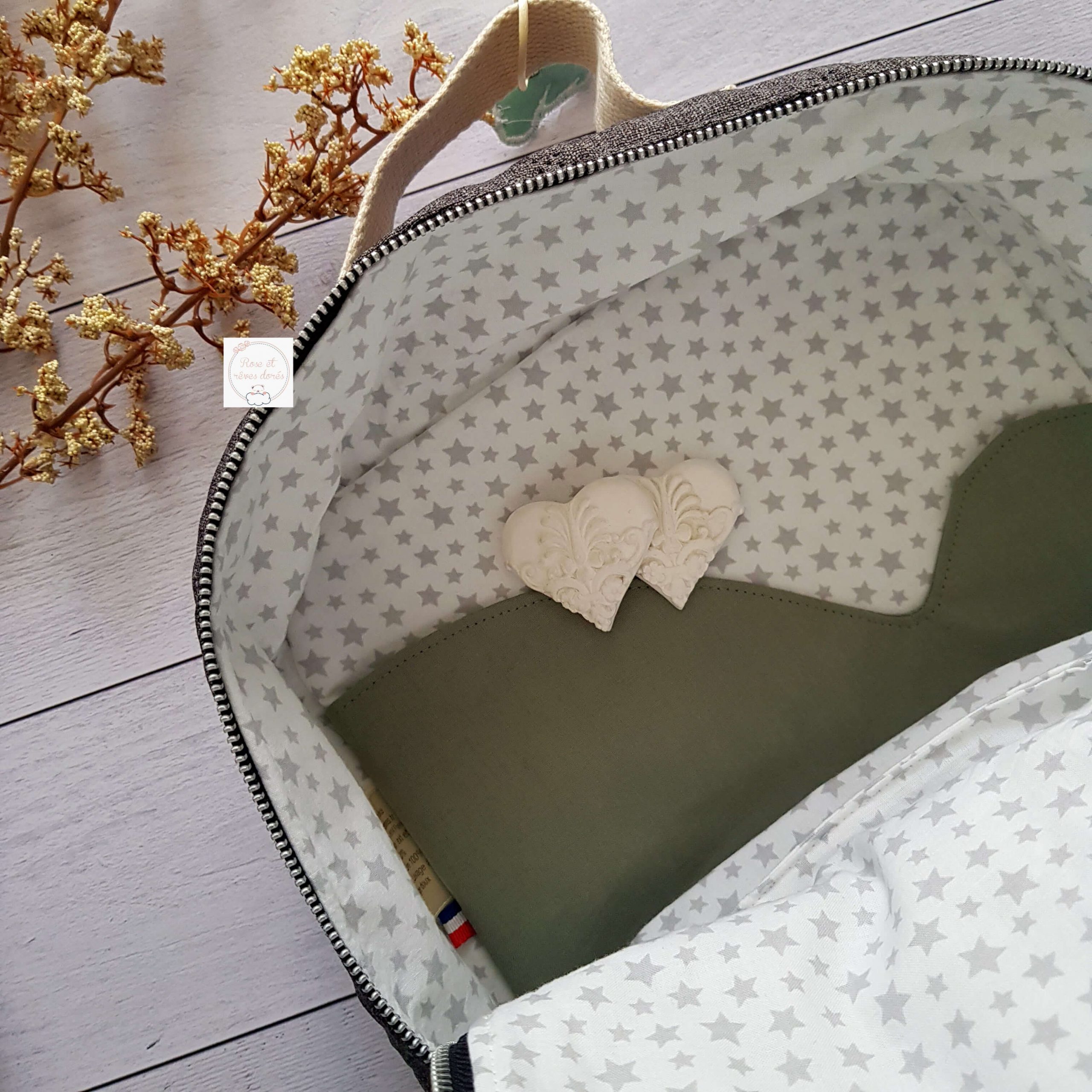 Une valisette prête à vous suivre dans de belles aventures. Pour accueillir un goûter, un doudou, des petites affaires, pour servir d’emballage pour offrir un coffret cadeau, pour les affaires pour la nounou ou la crèche, pour les affaires de bébé pour la salle de naissance… à vous d’en faire votre compagnon irremplaçable.
